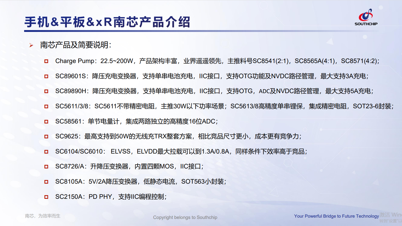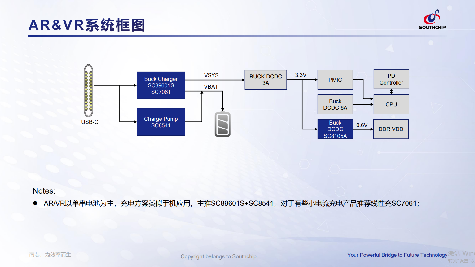 ⚫AR/VR以单串电池为主,充电方案类似手机应用,主推SC89601S+SC8541,对于有些小电流充电产品推荐线性充SC7061;