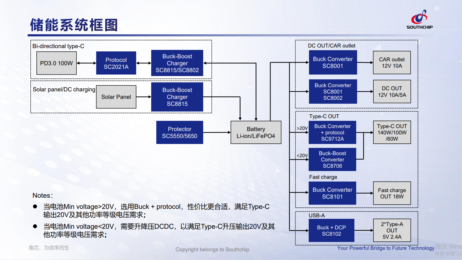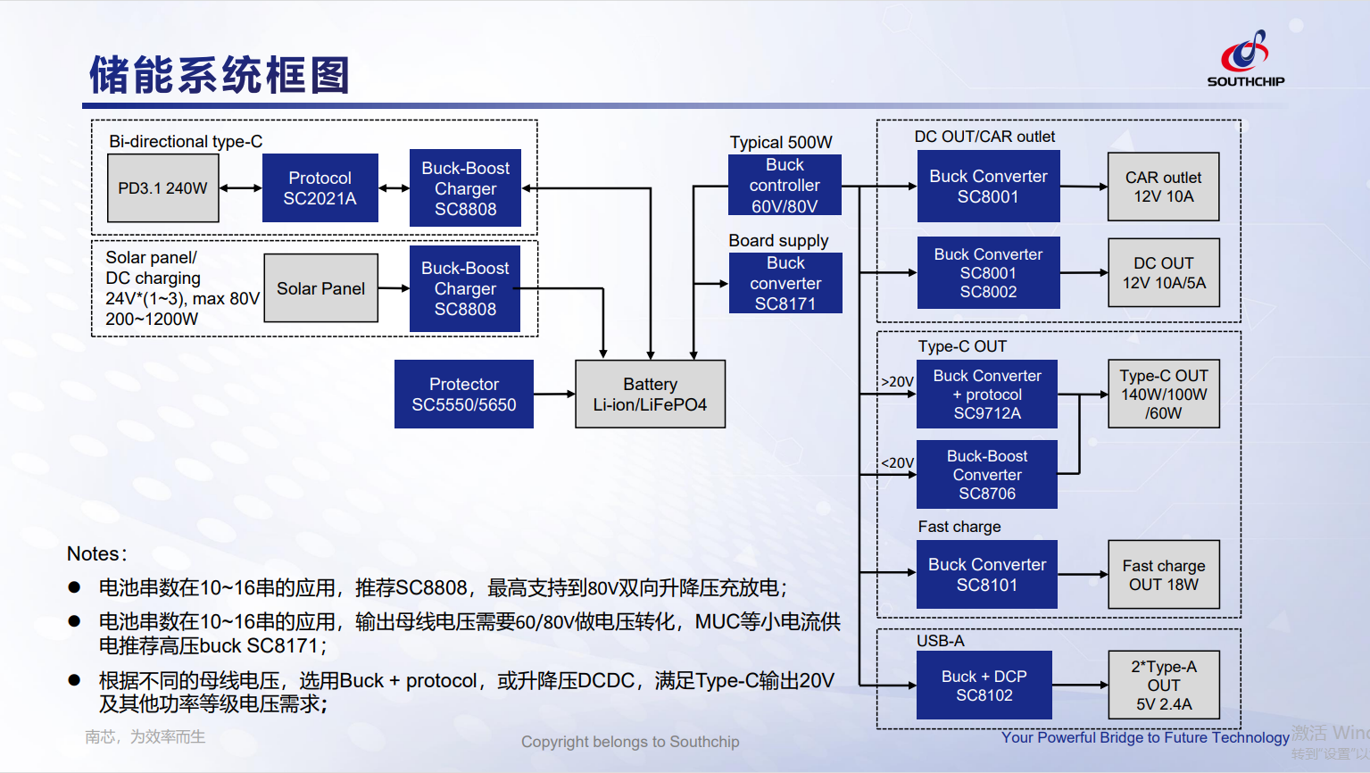 ⚫电池串数在10~16串的应用,推荐SC8808,最高支持到80V双向升降压充放电;