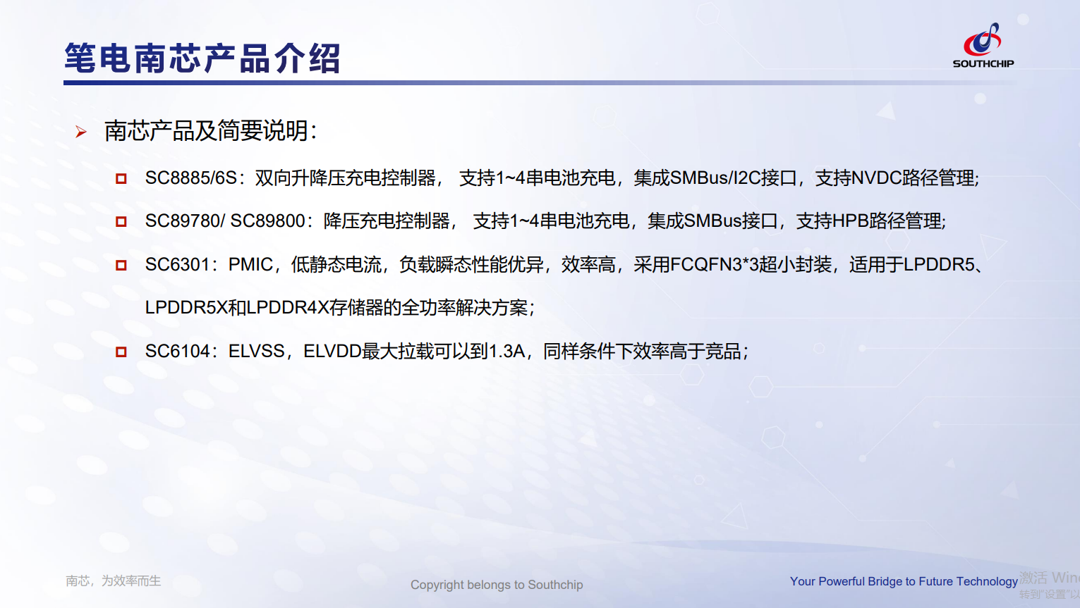 南芯产品及简要说明: