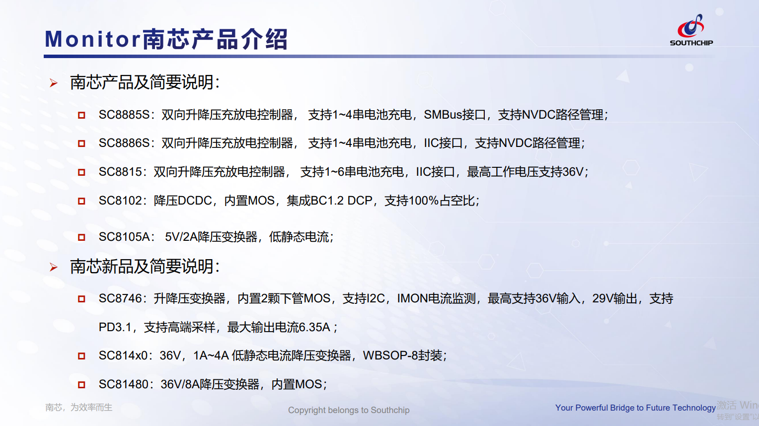 SC8885S:双向升降压充放电控制器, 支持1~4串电池充电,SMBus接口,支持NVDC路径管理;
