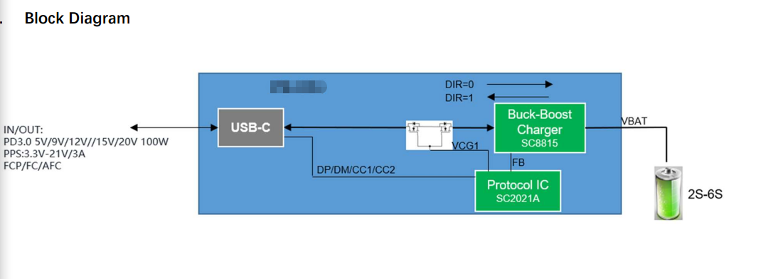 PD 协议,六节电池最大输出功率 100W,具有过流保护、短路保护功能。