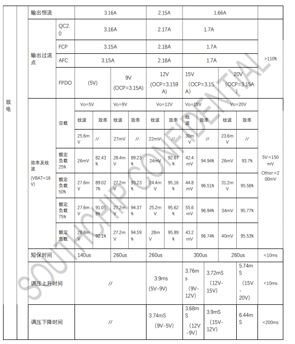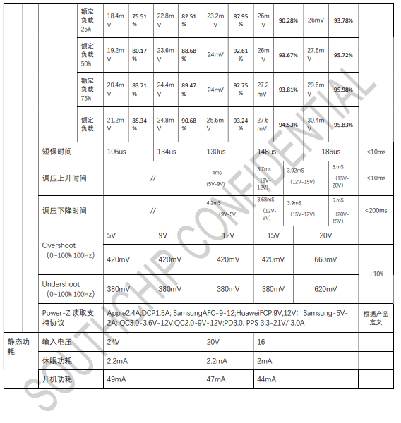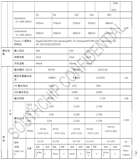 支持 Apple2.4A;DCP1.5A;FC3.0:5V-12V;FC2.0: 5V,9V,12V; AFC; FCP