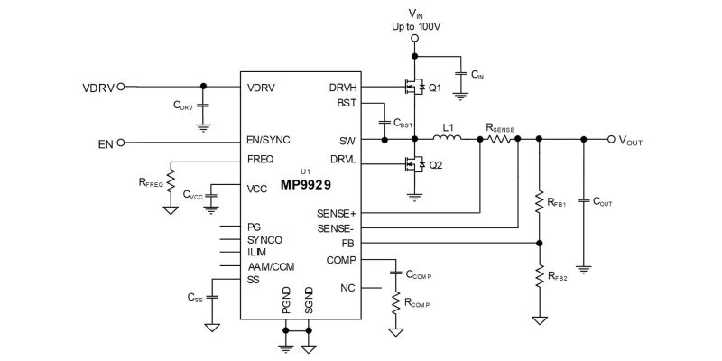 MP9929 是一款高压同步降压开关稳压器控制器,它可以直接将电压降至 100V。该器件采用脉宽调制 (PWM) 电流控制架构,具有精确的逐周期电流限制功能,可用于驱动双 N 沟道 MOSFET 开关。