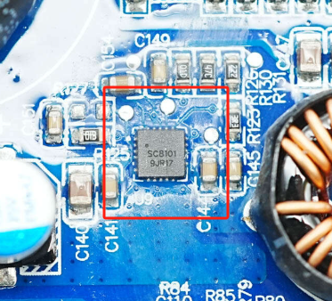 USB-A口采用南芯科技SC8101同步降压转换器进行降压输出。SC8101是一颗支持5V到32V宽电压范围输入,输出可达5V/5A的高效率同步降压DC-DC转换器,输出电压可调。同时,它还提供高精度的输出电流限制,当输出达到设定电流极限时,进入恒流模式。芯片内部集成开关管,外围元件精简,采用QFN-19封装。