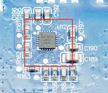 USB-C2和USB-A口协议芯片来自南芯科技,型号SC9712,是一款高集成度的双端口快充SoC,支持多种快充协议,集成36V 高效同步降压控制器,并带有一组Type C 接口和两组DPDM 快速充电协议接口,能够最大限度减少外部组件,支持UFCS快充协议。